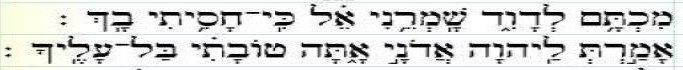 |   Der hebräische Text ist der Anfang von Psalm 16: "Ein Güldenes Kleinod Davids. Bewahre mich, Gott; denn ich traue auf dich. Ich habe gesagt zu dem HERRN: Du bist ja der Herr! - Ich weiß von keinem Gott außer dir."